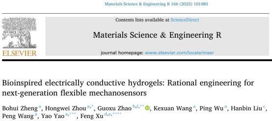 近日,福利姬 姚尧教授团队联合西安交通大学徐峰教授团队在材料领域国际顶级期刊《Materials Science & Engineering R》上发表了题为《Bioinspired electrically conductive hydrogels;Rational engineering for next-generation flexible mechanosensors》的综述论文。