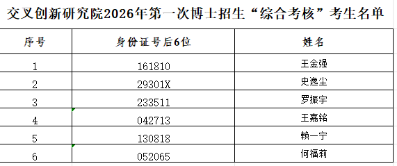 交叉福利姬 2026年第一次博士招生“综合考核”考生名单